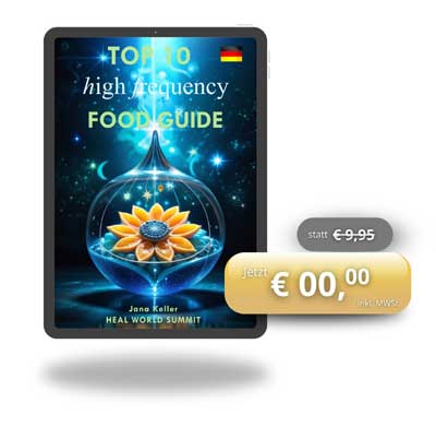 Kongressveranstalterin Jana Keller schenkt dir ihren High Frequency Food Guide, in dem du erfährst, wie du energieraubende Nahrung vermeiden und sogar die Lebensenergie bestehender Grundnahrungsmittel erhöhen kannst, ohne teure Nahrungsergänzungsmittel kaufen zu müssen.